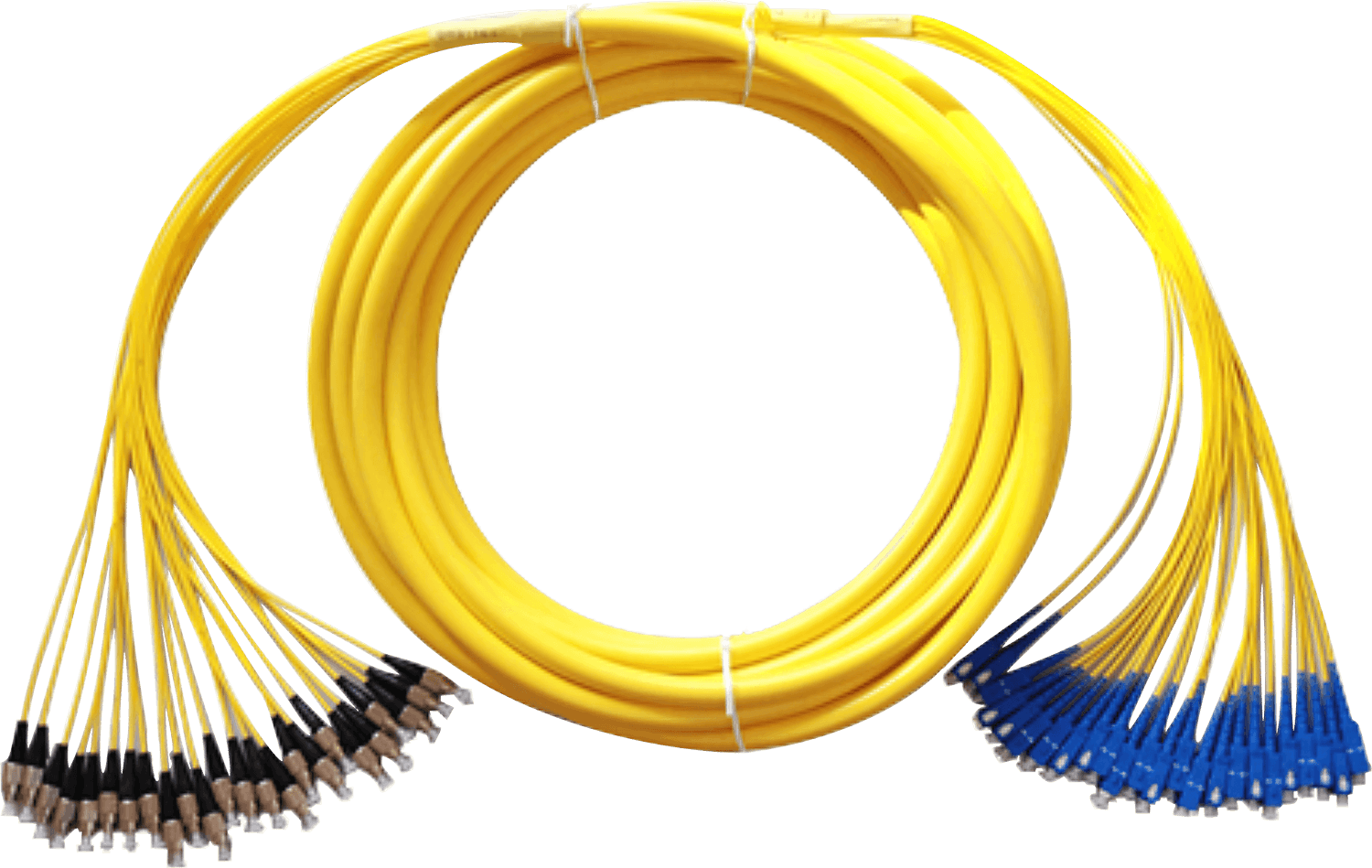 分支光纜連接器組件,也稱分支光纜組件、分支光纜尾纖等,可以加工成為一端為連接頭,也可加工兩端連接頭,常出現(xiàn)在光纖終端盒內(nèi),用于連接光纜與終端設(shè)備。尾纖分為多模尾纖和單模尾纖:多模尾纖為橙色,波長為850m,傳輸距離為500m,用于短距離互聯(lián);單模尾纖為黃色,使用波長有兩種,1310nm和1550nm,傳輸距離分別為10km和40km,由4、6、8、12、24等不同芯數(shù)組成。
