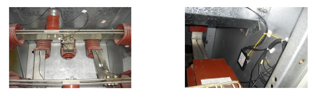 開關(guān)柜內(nèi)一般上面三相和下面三相各安裝1個(gè)探頭,共安裝6個(gè)探頭。采用光纖光柵溫度傳感器則可以將其直接粘貼在接頭等易發(fā)熱部位上,實(shí)時(shí)監(jiān)測測點(diǎn)溫度的變化,實(shí)現(xiàn)故障的早期預(yù)測和報(bào)警,當(dāng)發(fā)生故障時(shí),提供報(bào)警并迅速準(zhǔn)確確定故障點(diǎn)位置,并按相應(yīng)預(yù)案采取安全處理措施。