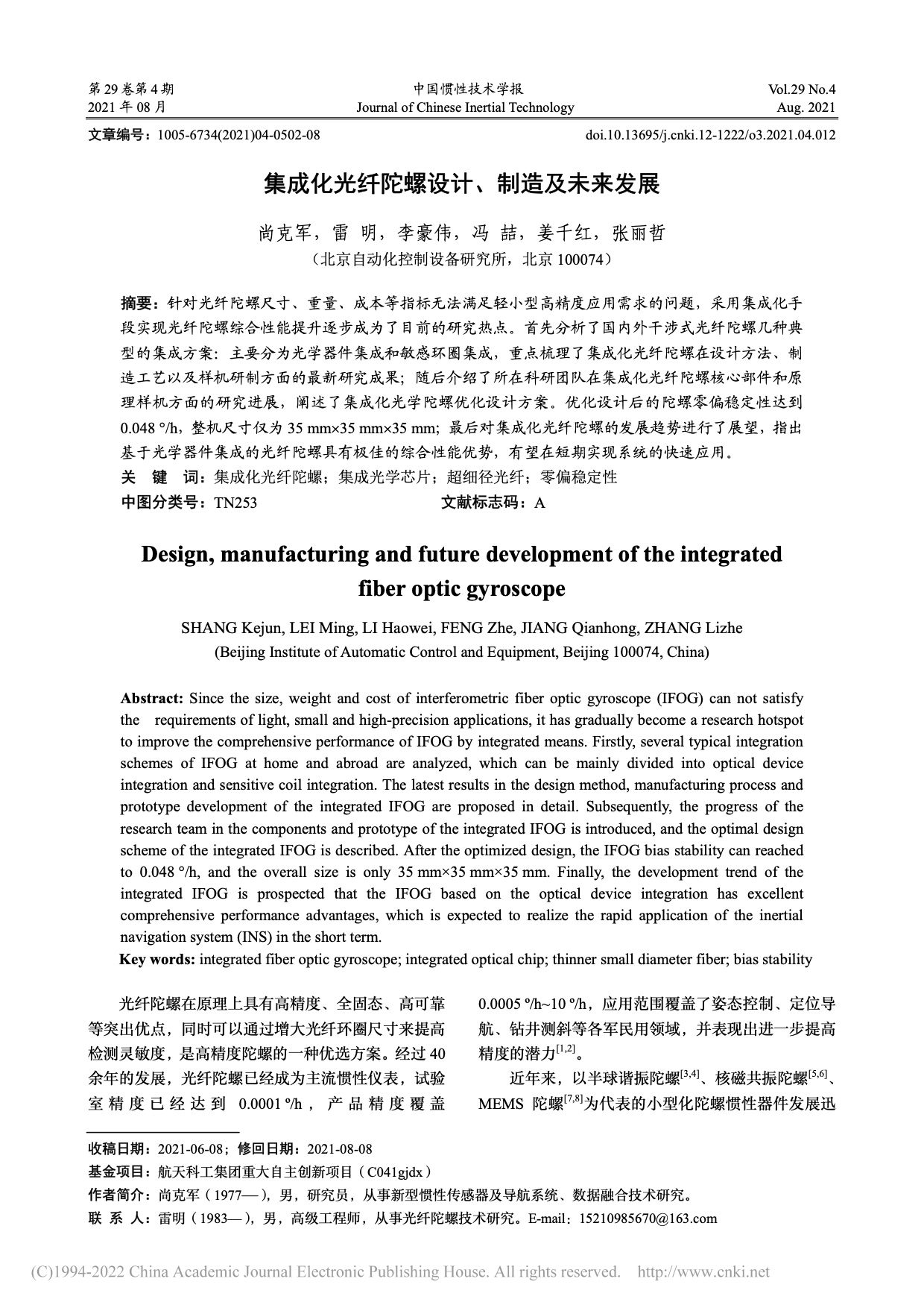 集成化光纖陀螺設(shè)計(jì)、制造及未來發(fā)展_尚克軍