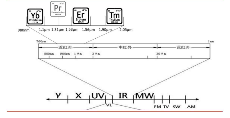 圖2 鐿、鐠、鉺、銩各稀土元素光纖元素輻射波段