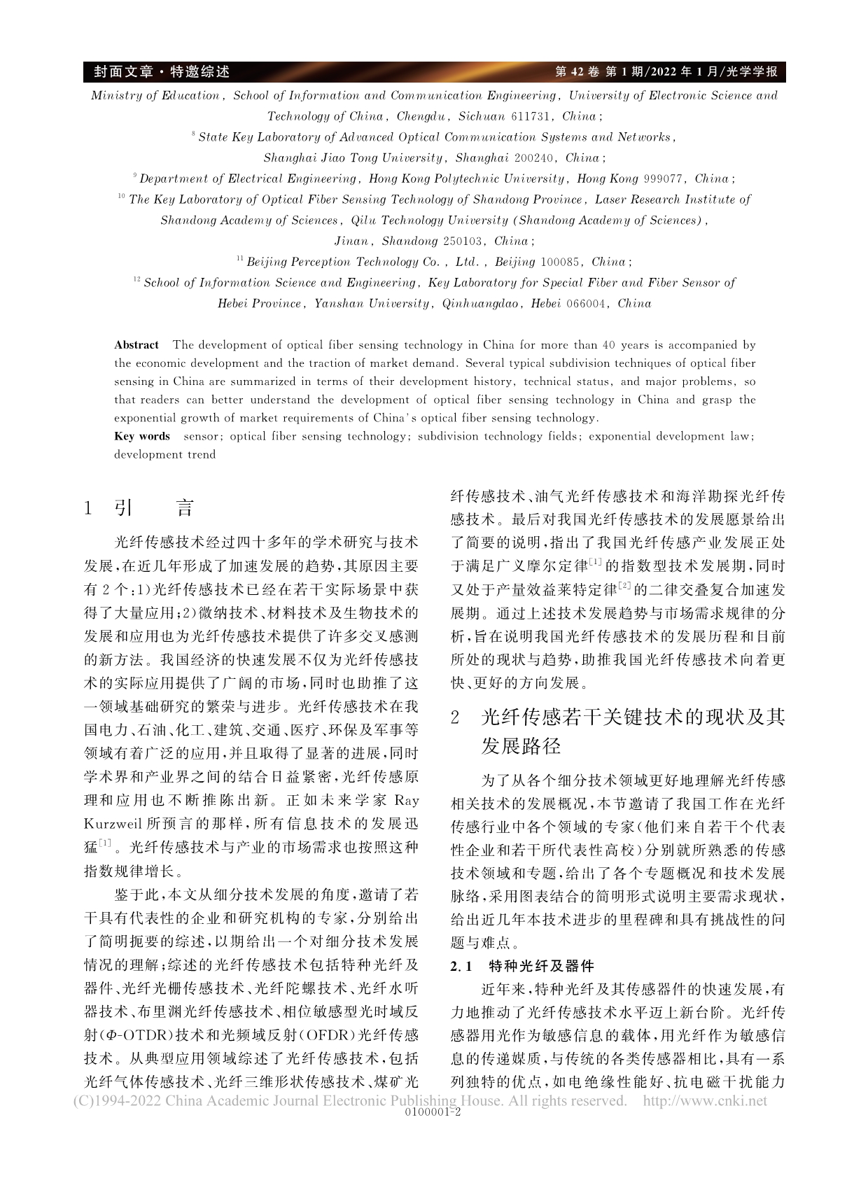 我國光纖傳感技術(shù)發(fā)展路線圖